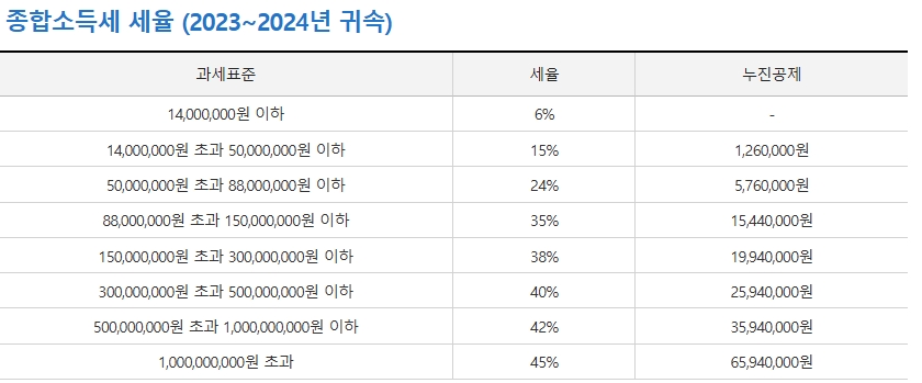 📊 2024년 소득세율표